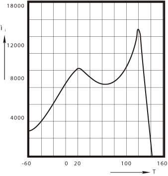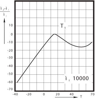 Зависимость начальной проницаемости µi от температуры (измерено для кольцевого сердечника T16, B≤0,25мТ)