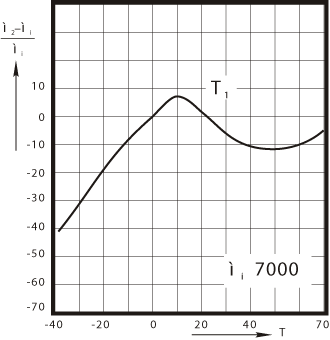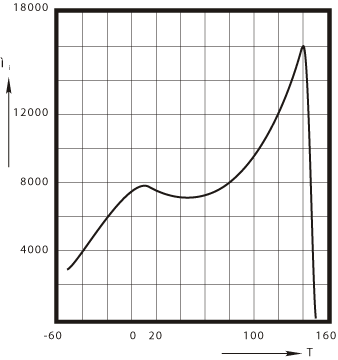 Зависимость начальной проницаемости µi от температуры (измерено для кольцевого сердечника T10, B≤0,25мТ)
