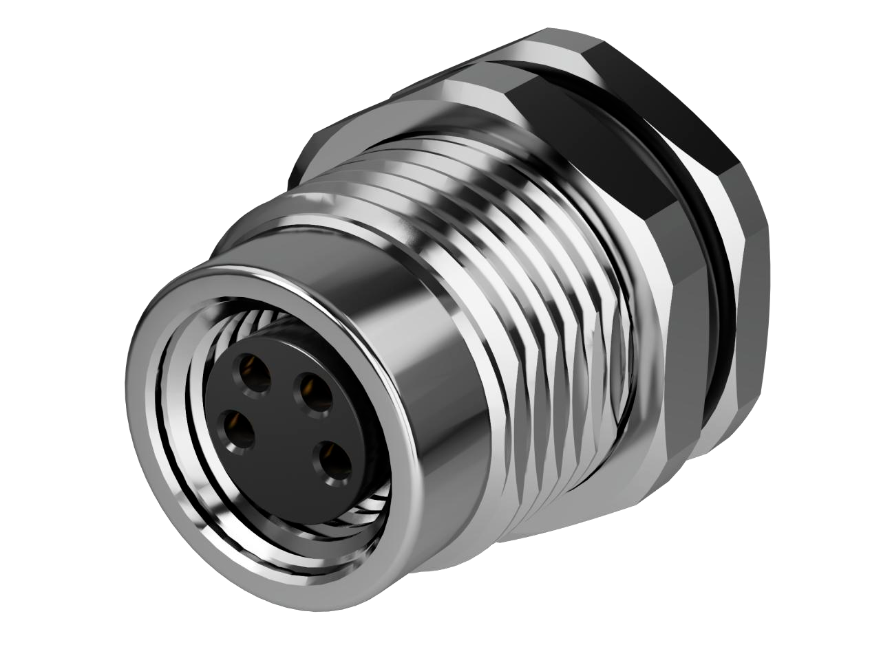 M8 розетка блочная, код A, 4 конт., пайка, гайка M12x1.0 спереди, резьба латунь никелиров.