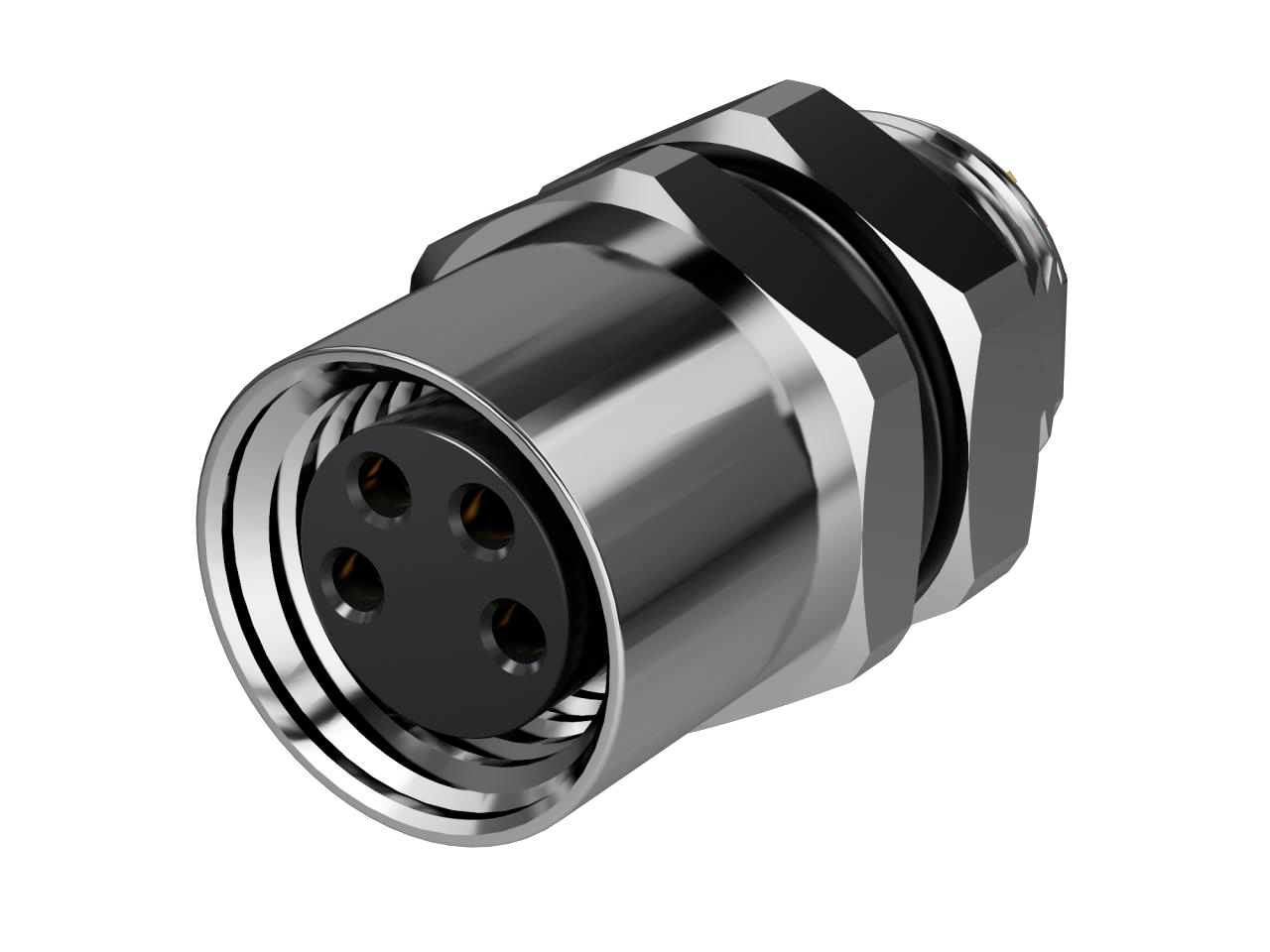 10M08A04FBRF8SC011M8 розетка блочная, код A, 4 конт., пайка, гайка M8x0.5 сзади, резьба латунь никелиров. / M08A04FBRF8SC011BEISIT364,55