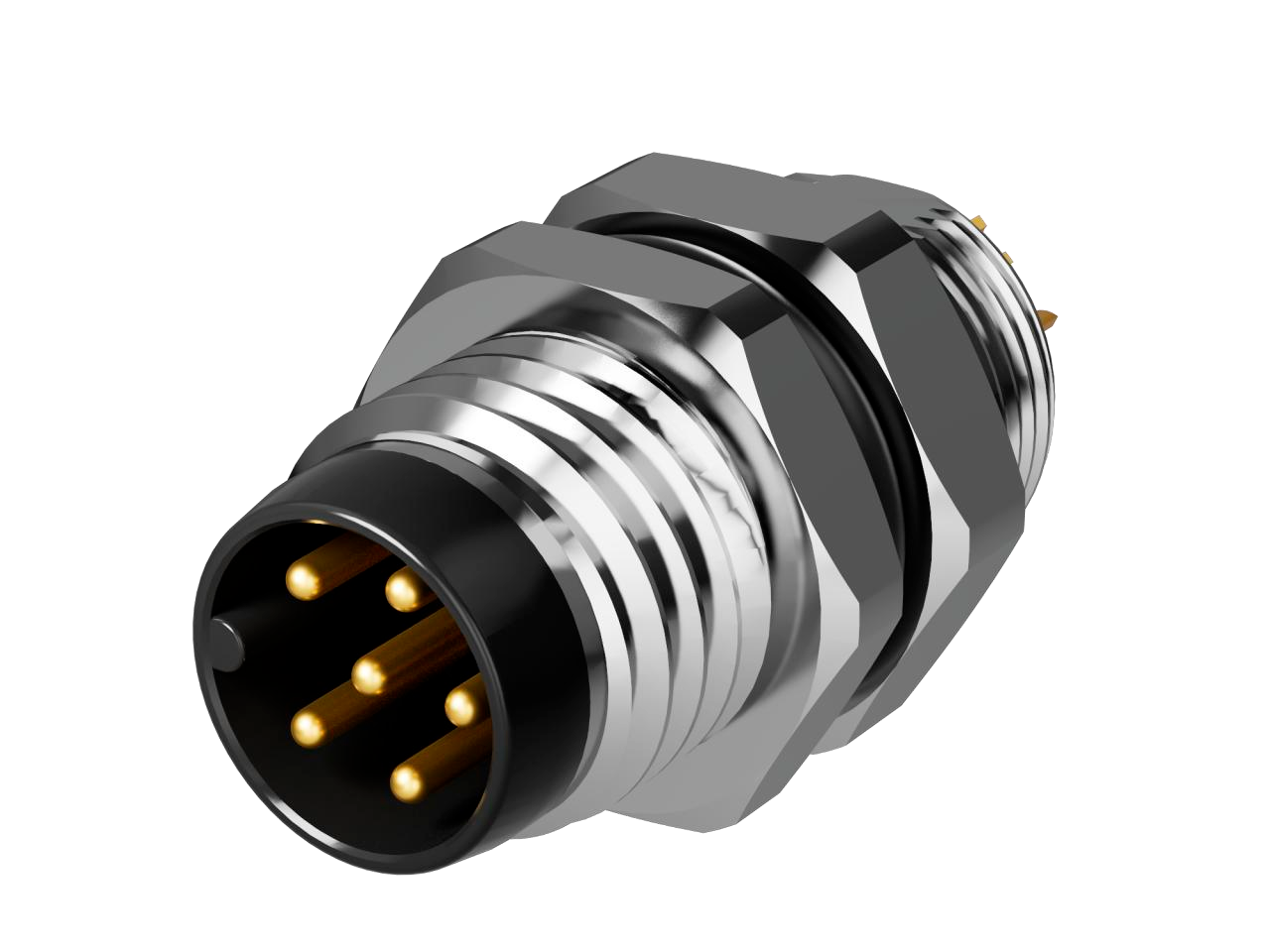 M8 вилка блочная, код A, 6 конт., пайка, гайка M8x0.5 сзади, резьба латунь никелиров. / M08A06MBRF8SC011