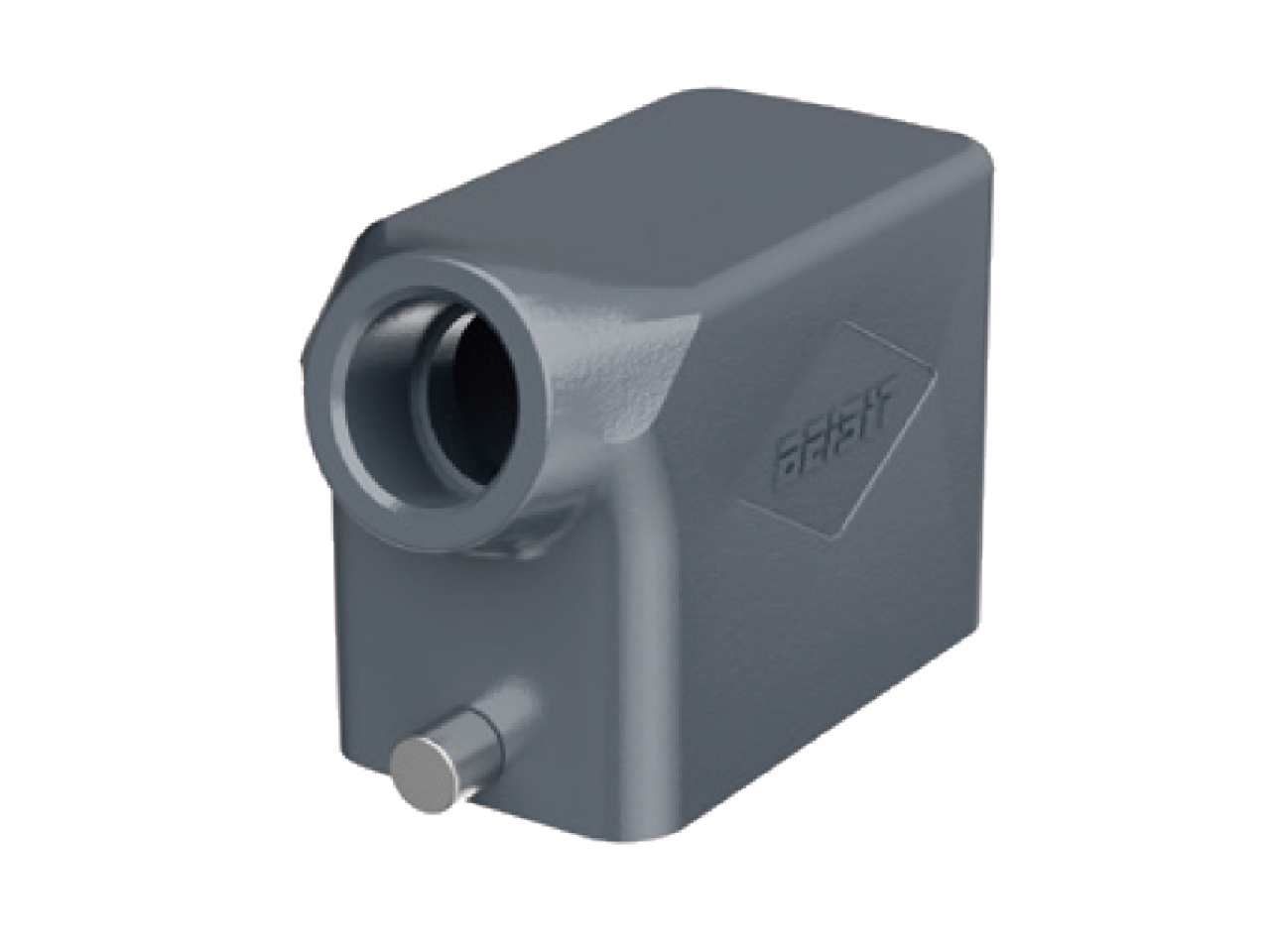 Крышка разъема на кабель, размер 10B, упоры для одной защелки, 1 отверстие с резьбой для кабельных вводов M20 с боковым расположением, алюминиевый сплав