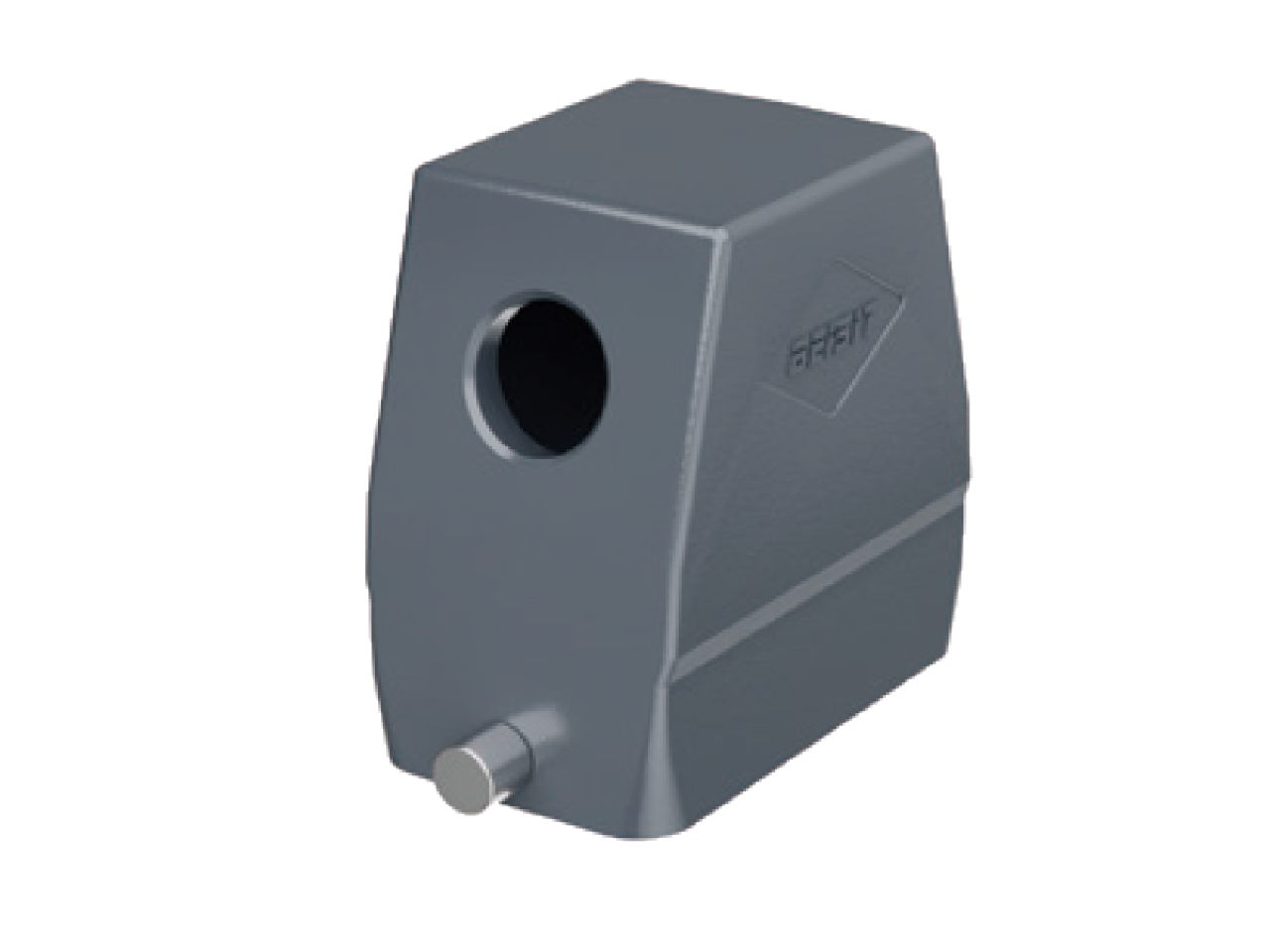 Крышка разъема на кабель, размер 10B, высокое исполнение, упоры для одной защелки, 1 отверстие с резьбой для кабельных вводов M32 с боковым расположением, алюминиевый сплав