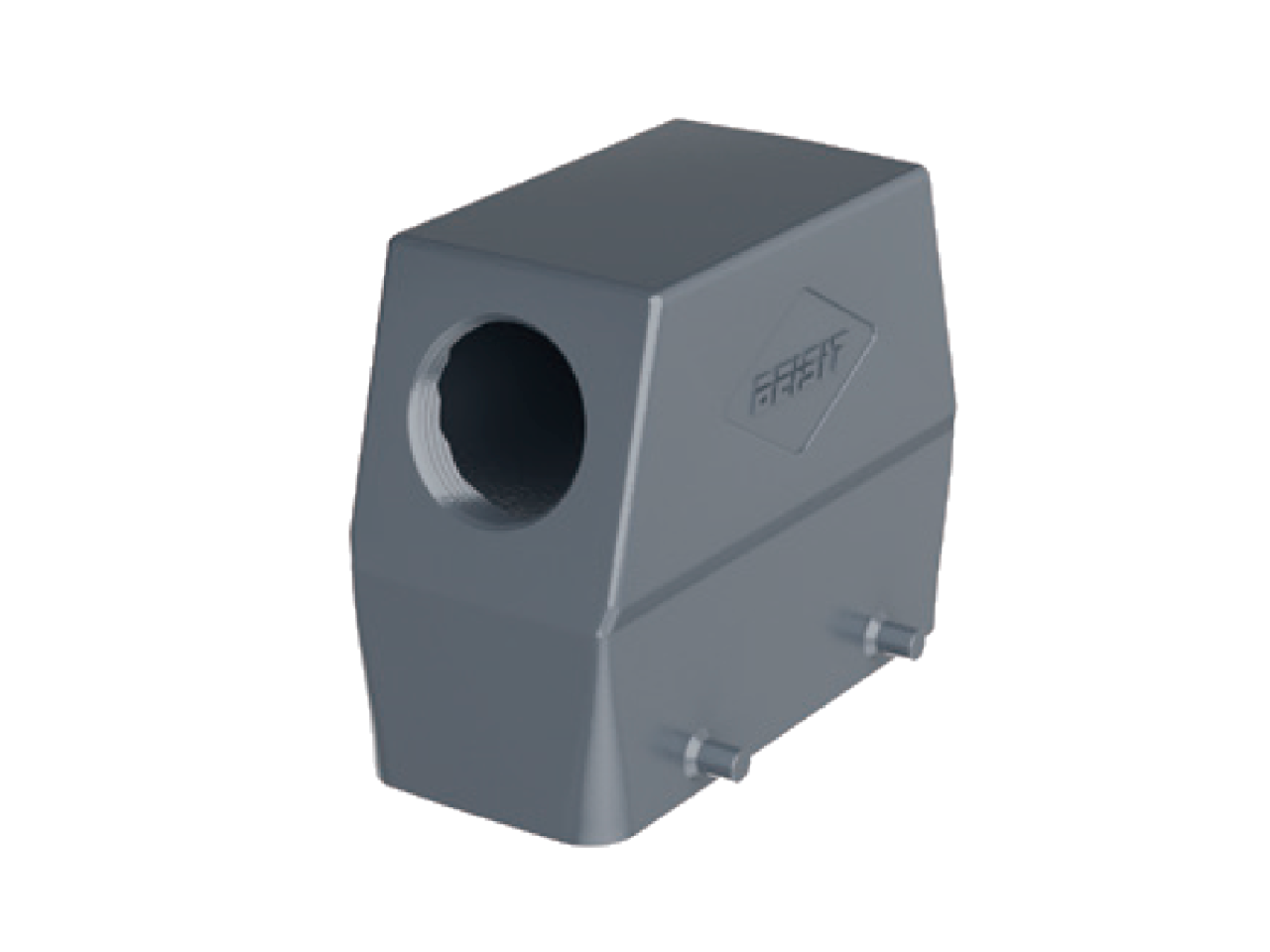 Крышка разъема на кабель, размер 16B, высокое исполнение, упоры для двух защёлок, 1 отверстие с резьбой для кабельных вводов PG29 с боковым расположением, алюминиевый сплав