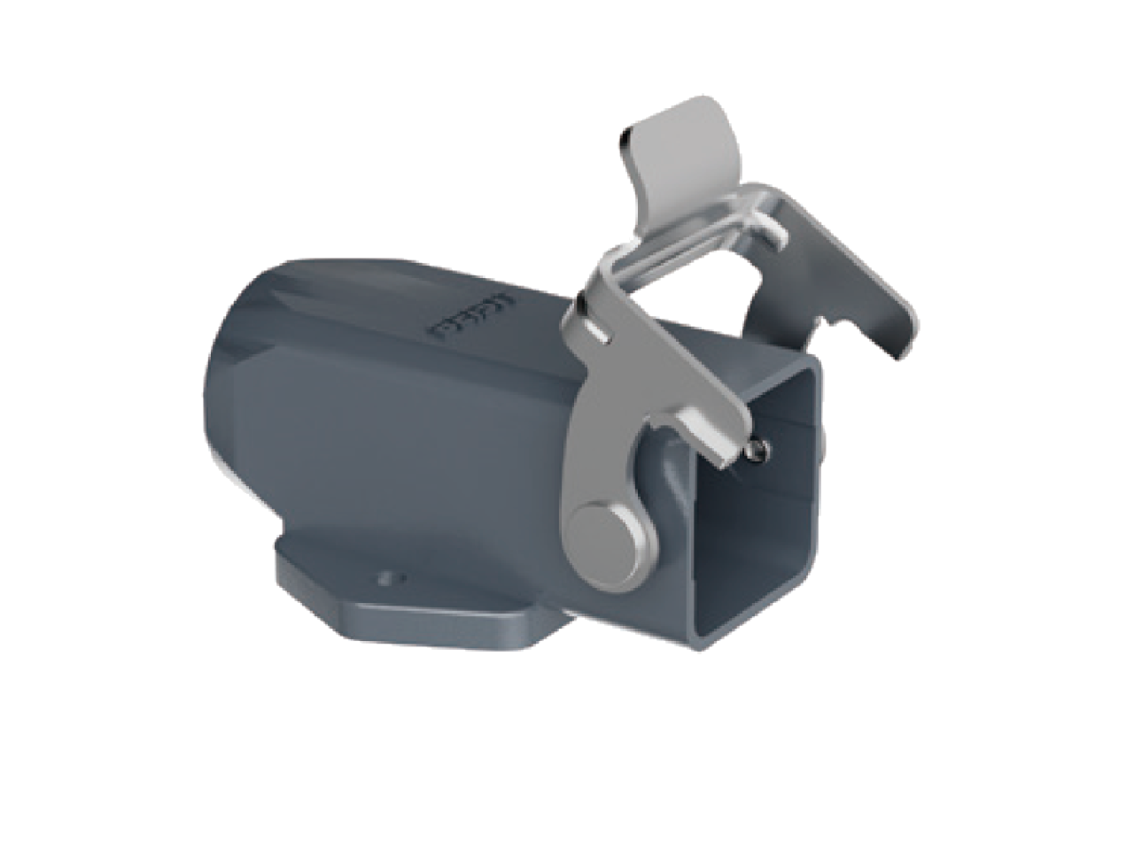 Корпус разъема на панель, закрытый, размер 3A, угловое расположение, с защелкой, 1 отверстие с резьбой для кабельных вводов M20, алюминиевый сплав / H3A-SMS-1LS-M20