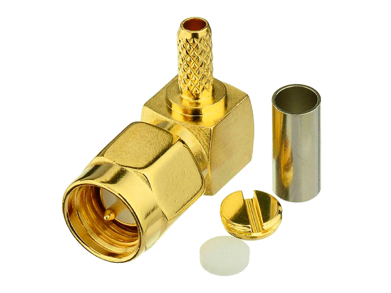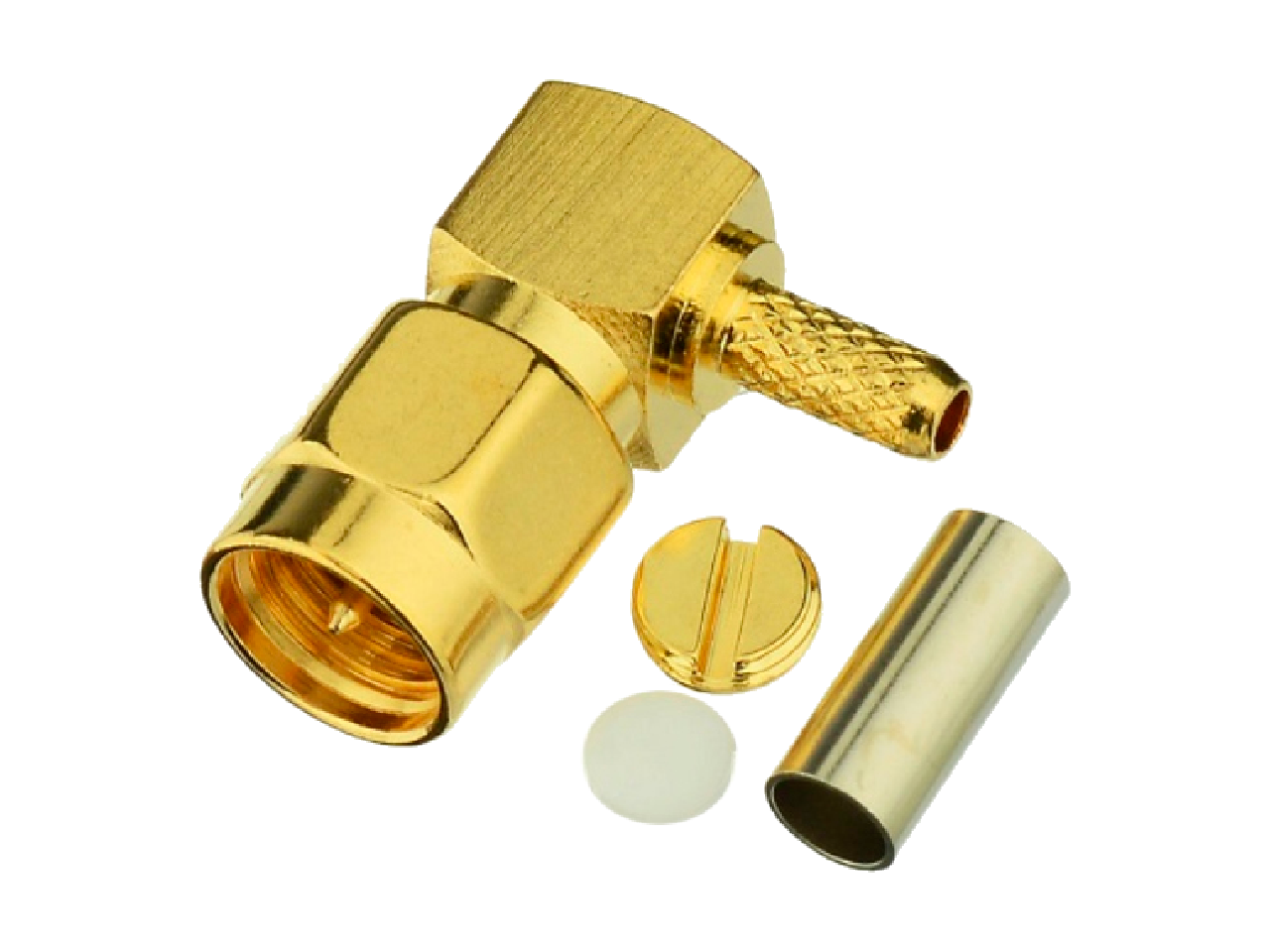 Высокочастотный разъем SMA, вилка угловая на кабель, золочение, кабель RG-174