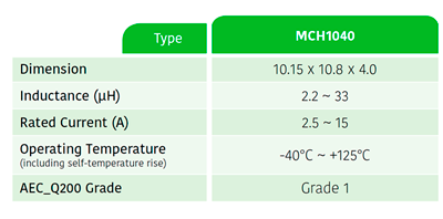 Серия экранированных силовых индуктивностей MCU пополнилась типоразмерами 1277, 1255, 1040, 1060, 6045, и 7045. По сравнению с традиционными чип-индукторами серия MCU имеет усиленную структуру с высокой надежностью, места пайки проводов защищены от короткого замыкания, что повышает стабильность автоматического производства, а ферритовый сердечник обеспечивает высокое значение индуктивности до 680uH, что делает его подходящим для DC-DC преобразователей, импульсных источников питания и фильтрующих цепей в автомобильных преобразователях энергии и соответствующих модулях. Применение: