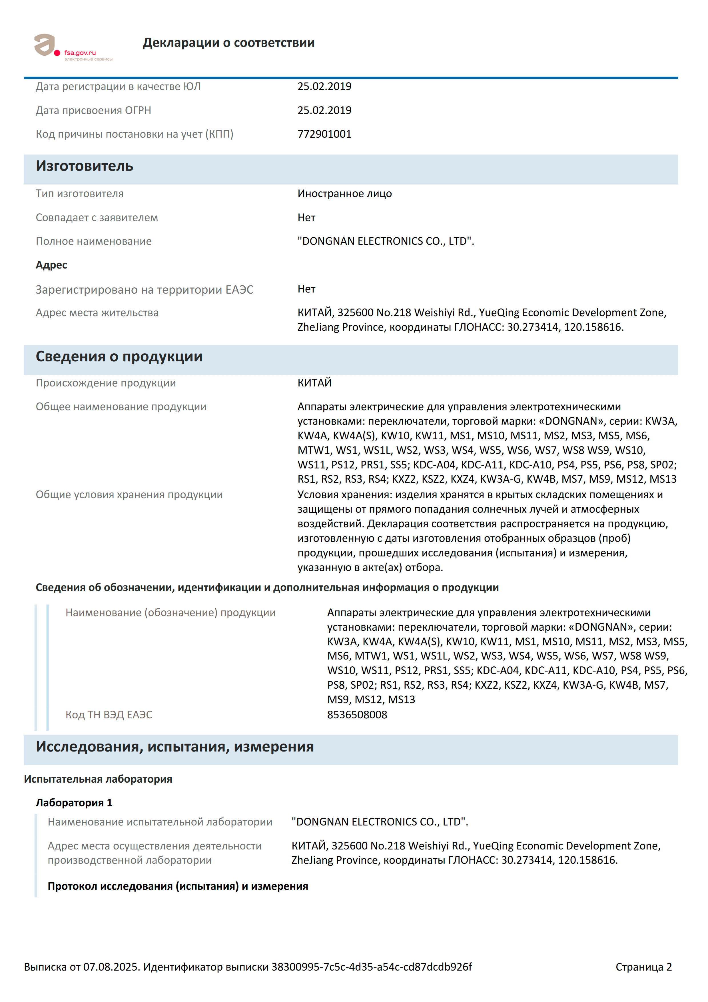 Декларация о соответствии