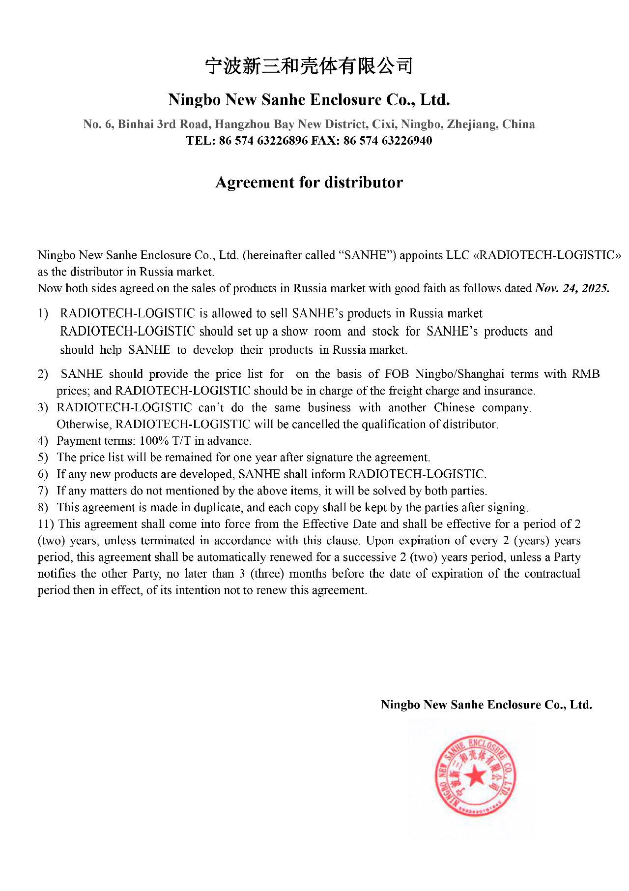 Дистрибьюторское соглашение, срок действия до 24 ноября 2027 г.