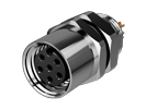 M8 розетка блочная, код A, 6 конт., пайка, гайка M8x0.5 сзади, резьба латунь никелиров. / M08A06FBRF8SC011