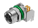 M8 розетка блочная угловая на плату экранир., код A, 4 конт., гайка M10x0.75 спереди, резьба латунь никелиров. / M08A04FBRB1P9001