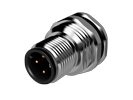 M12 вилка блочная прямая на плату, код D, 4 конт., пайка, гайка PG9 сзади, резьба латунь никелиров.