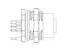 M12 розетка блочная прямая на плату, код A, 10 конт. +GND, пайка, гайка PG9 спереди, резьба латунь никелиров. / M12A10FBRB9P1111