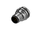 M12 вилка блочная прямая на плату, код B, 5 конт. +GND, пайка, гайка M16x1.5 спереди, резьба латунь никелиров.